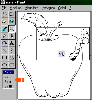 Nel programma Paint lo "ZOOM" permette di ingrandire una parte d'immagine al 200% (2X), al 400% al 600% (6X) o all'800% (8X). Ingrandendo di 6 volte, per esempio, sono perfettamente visibili i singoli pixel.