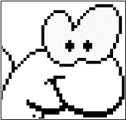 Le immagini più semplici contengono solo pixel in bianco e nero. Le sfumature della gamma dei "grigi" sono elaborate combinando i pixel in schemi che l'occhio non individua.
